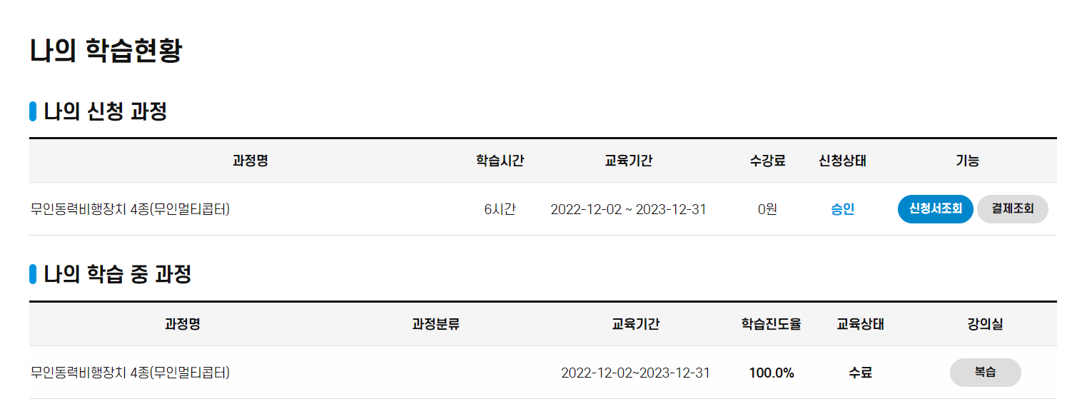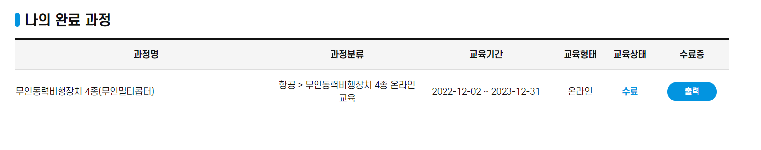 4. 수강 신청을 한다. : 무인동력비행장치 4종 온라인교육 -> 무료이니 걱정x