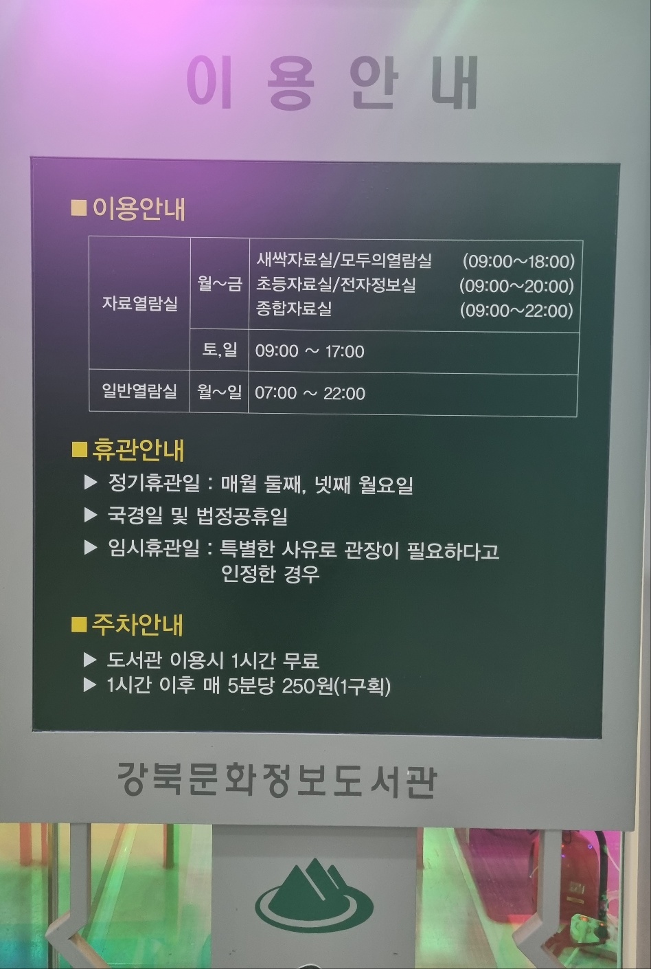 자료실: 평일 09:00-22:00, 주말 09:00-17:00 /